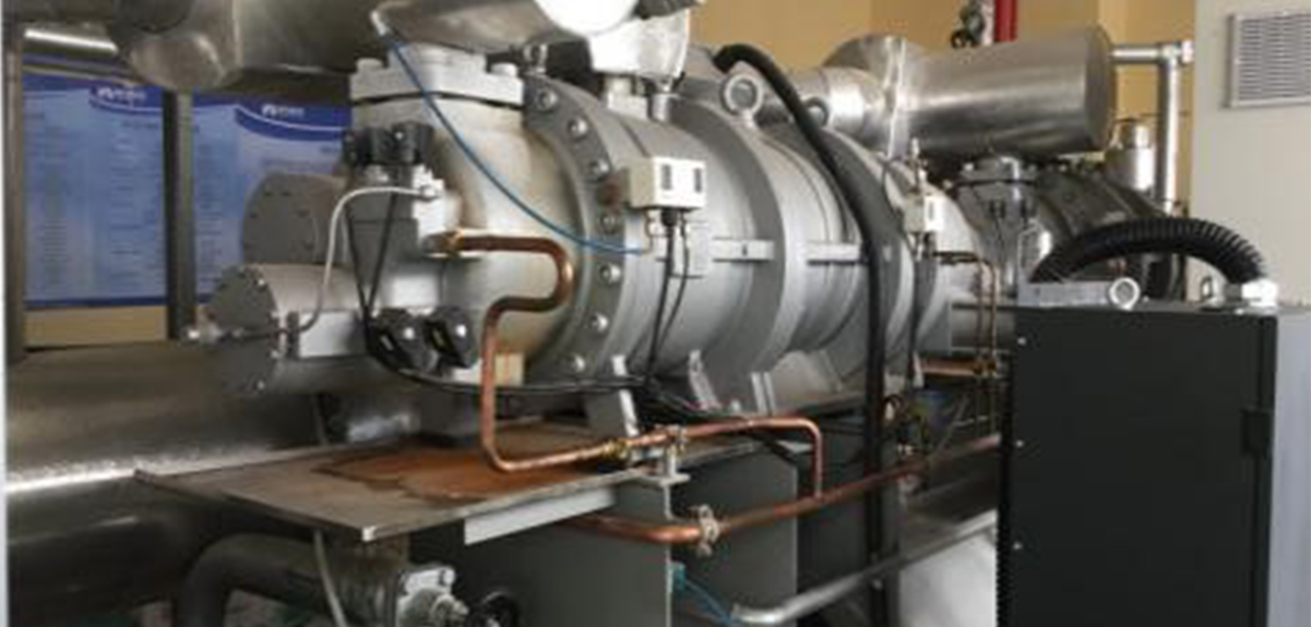 One Hanbell compound two-stage variable frequency compressor LT-S-V and one Hanbell conventional two-stage refrigeration compressor LT-S connected in parallel