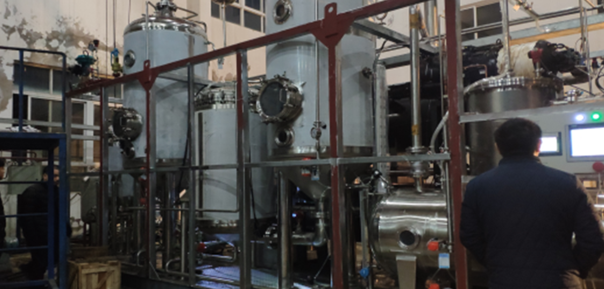該設備運採用了漢鐘精機RC2-G系列餘熱接纳高溫熱泵壓縮機實現冷熱共用,故比之前的電鍋爐+冷水機組的能效比高2倍以上,綜合COP可達7.0以上。现在客戶一样平常控制在70℃左右蒸發,蒸發後的蒸汽經管路進入低溫冷凝罐進行冷凝成液體,低溫冷凝罐內的冷量來自于冷媒蒸發,液體到達到一定進行排放。
